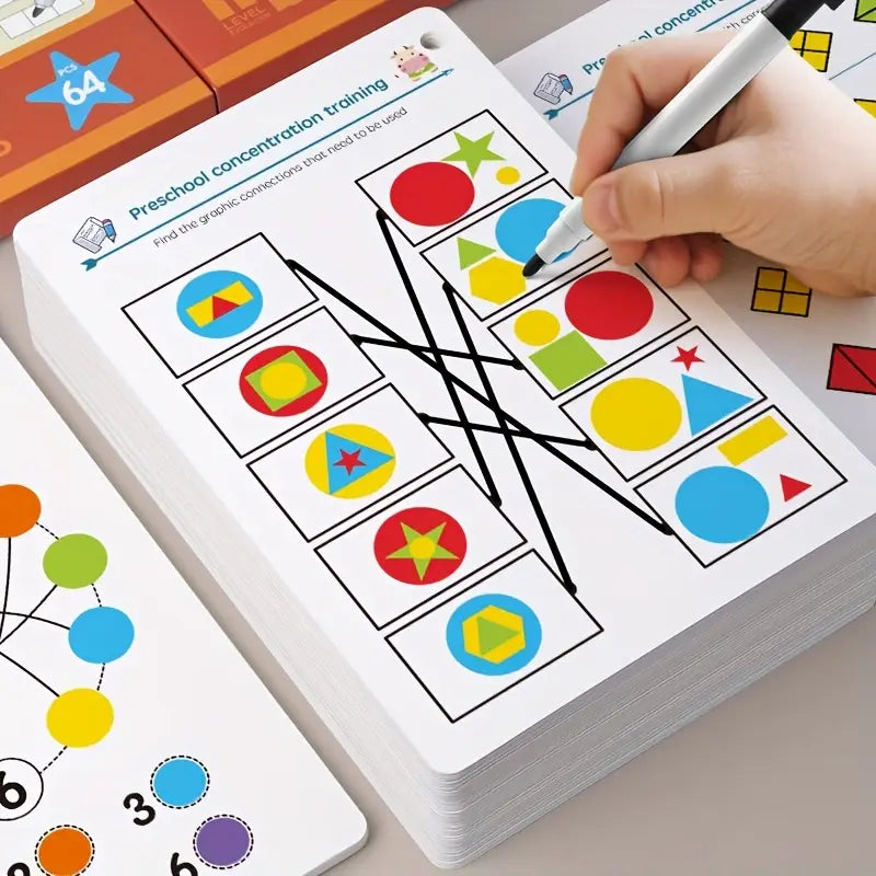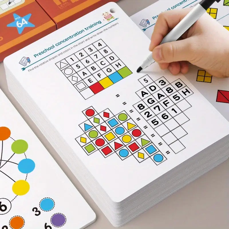 64-Page Reusable Learning Workbook Bundle with 8 Pens & 1 Eraser