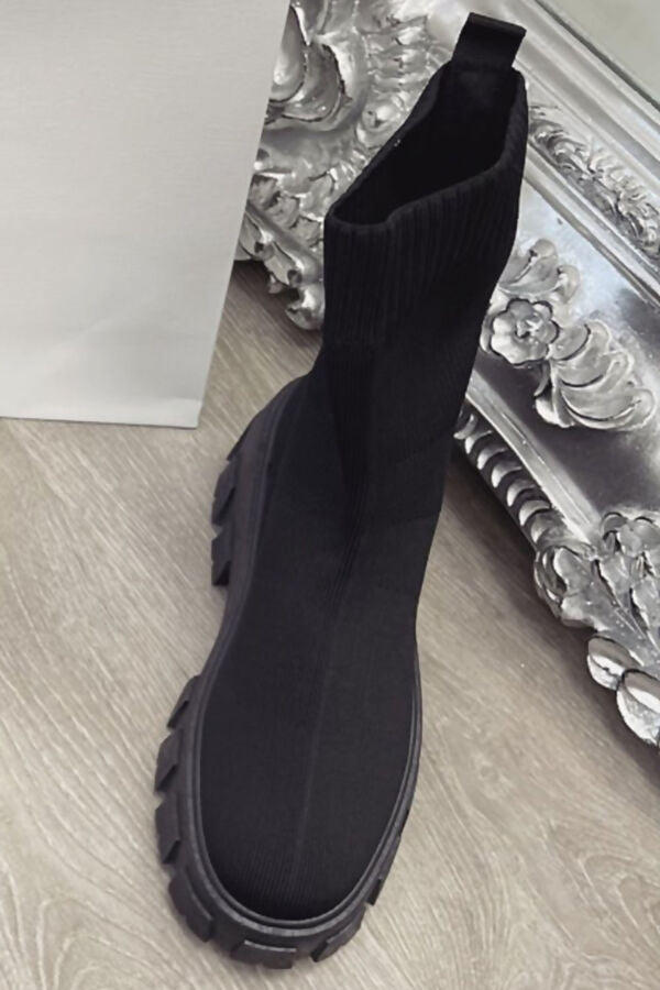 Black Chunky Sock Ankle Boots