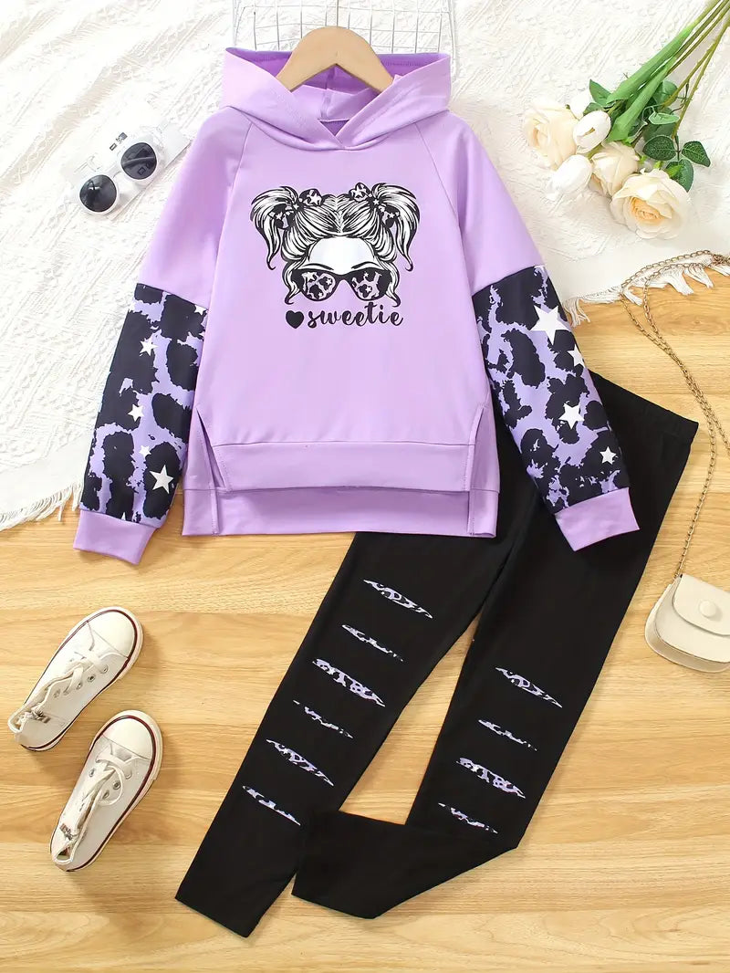 Casual Character Print Hooded Long Sleeve Jacket and Random Ankle-Length Pants