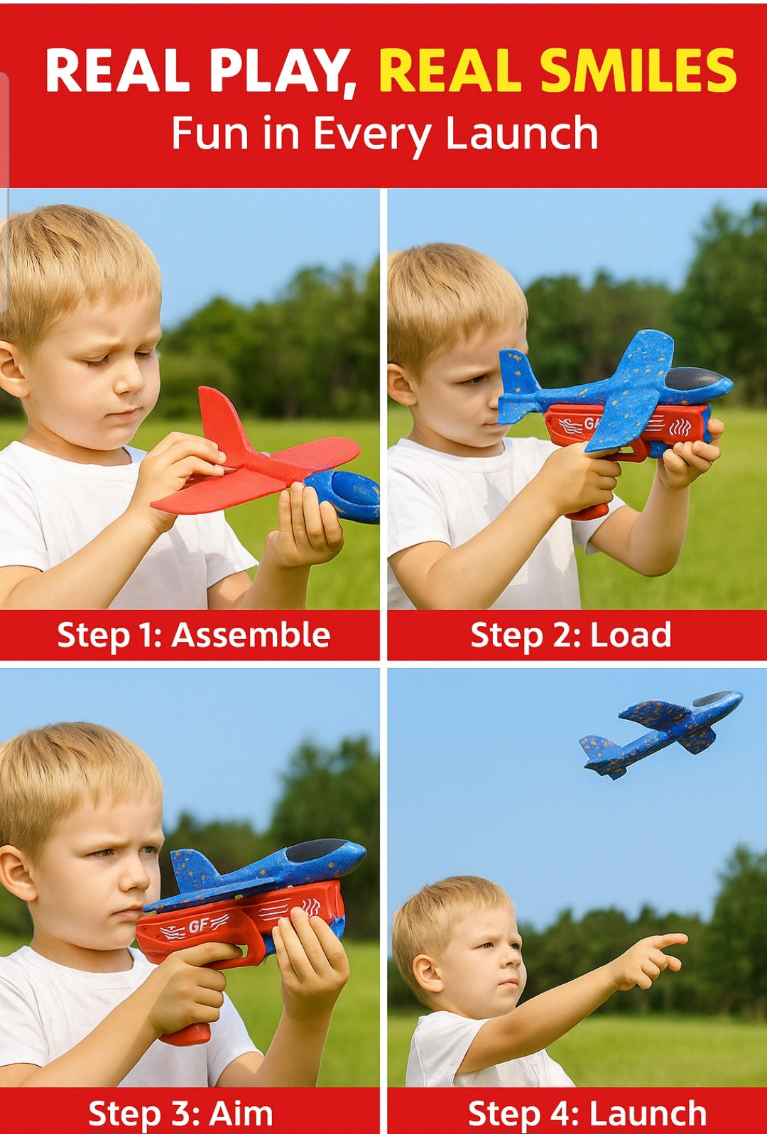 Made from premium lightweight foam and sturdy plastic this catapult aircraft gun ensures safe play indoors and outdoors. The soft foam planes are gentle on hands and furniture minimising damage risk while providing endless fun for young kids aged 3 and above. Rounded edges and child-friendly materials make it ideal for worry-free family playtime every day.