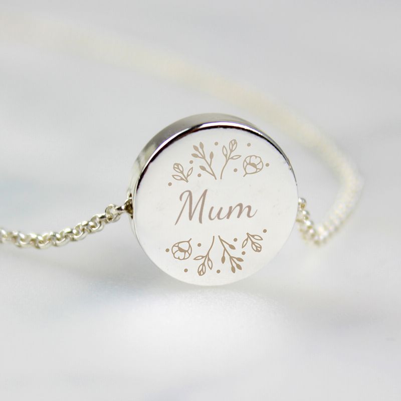 Add a touch of elegance and sentimentality to your accessory collection with our Personalised Silver Tone Wild Flowers Disc Necklace