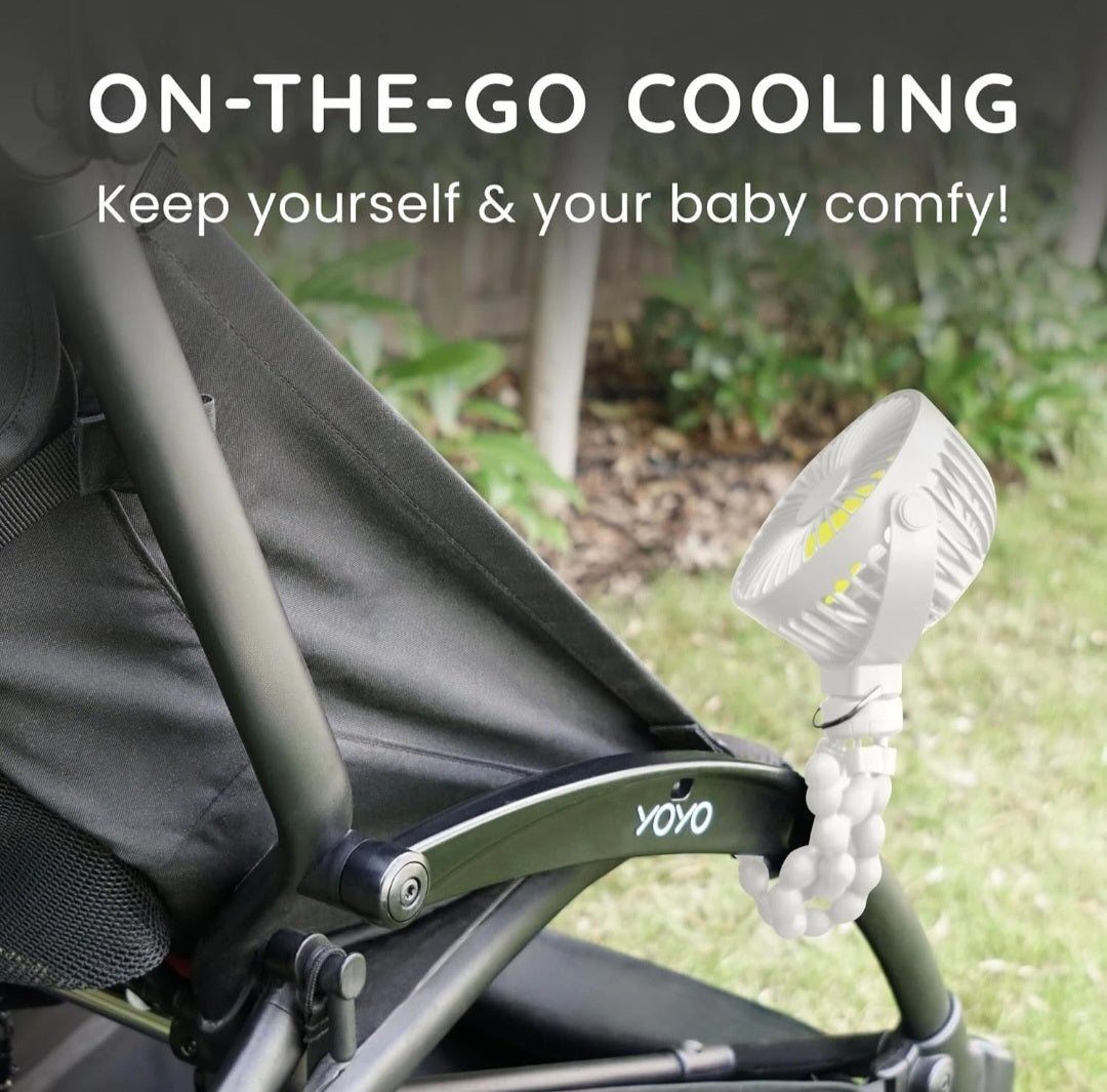 The unique octopus-style bendable tripod allows secure attachment to strollers, car handles, desks, or crib rails, giving you flexible positioning and cooling comfort from any angle.