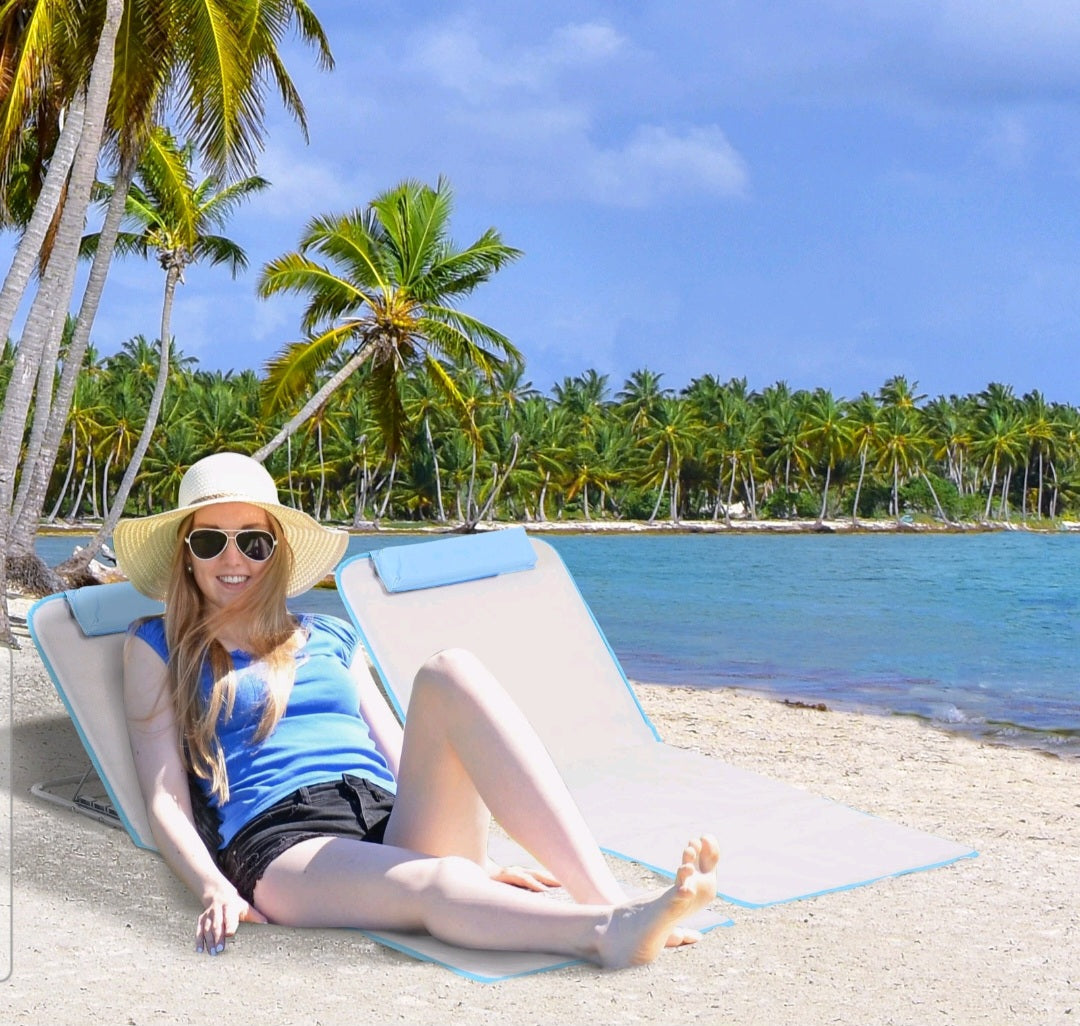 - • Set of two mats: Great for enjoying the sun and the sea with a friend, this folding beach lounger provides a comfortable seat for you all day long, preventing your body burning on the sand.
