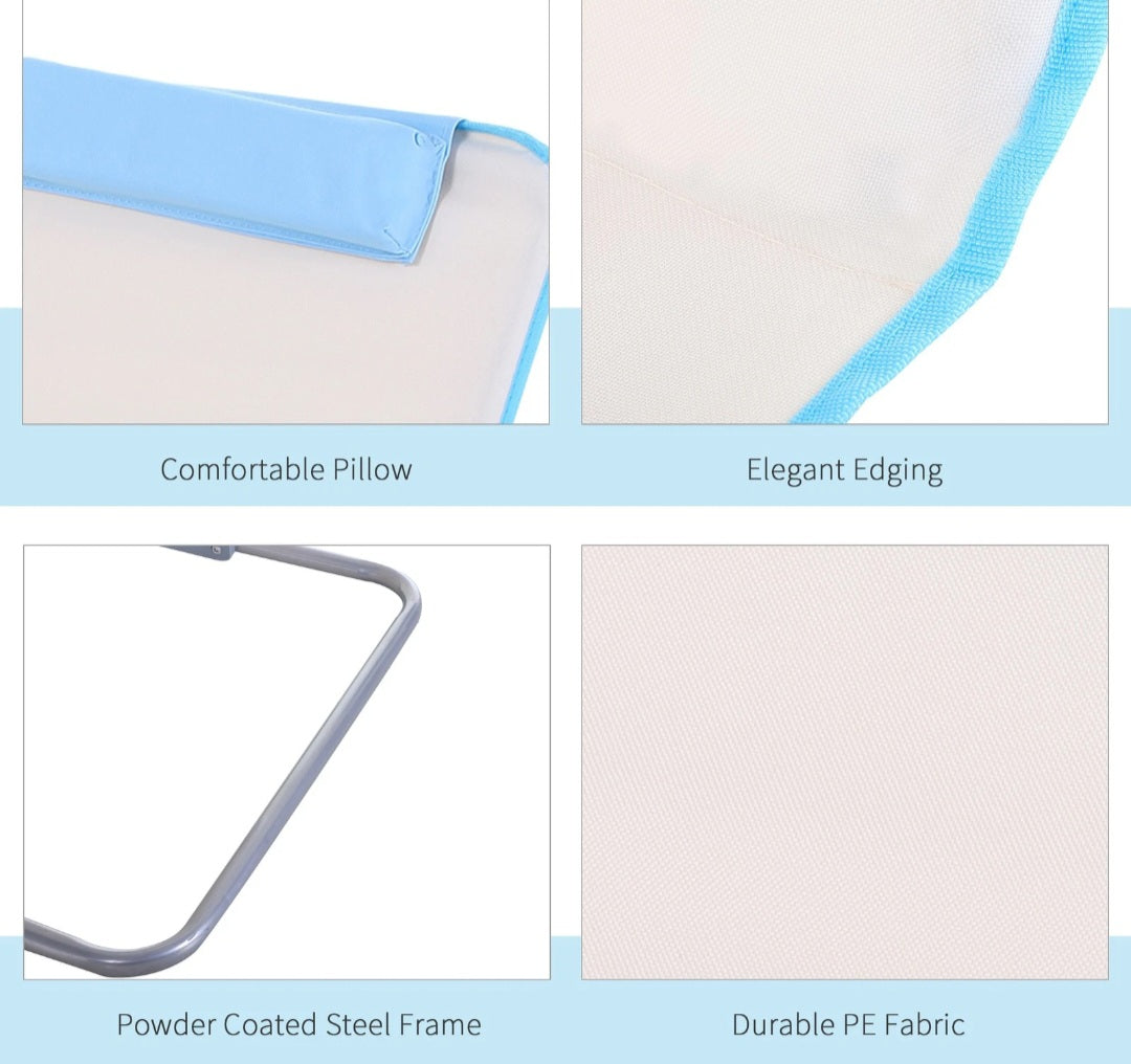 - • Robust & comfortable build: Powder-coated metal frame delivers strong, solid stability. The tightly stretched PE fabric seat features a 3-layer padded design for firm, comfortable support, while the attached pillow adds head and neck comfort.