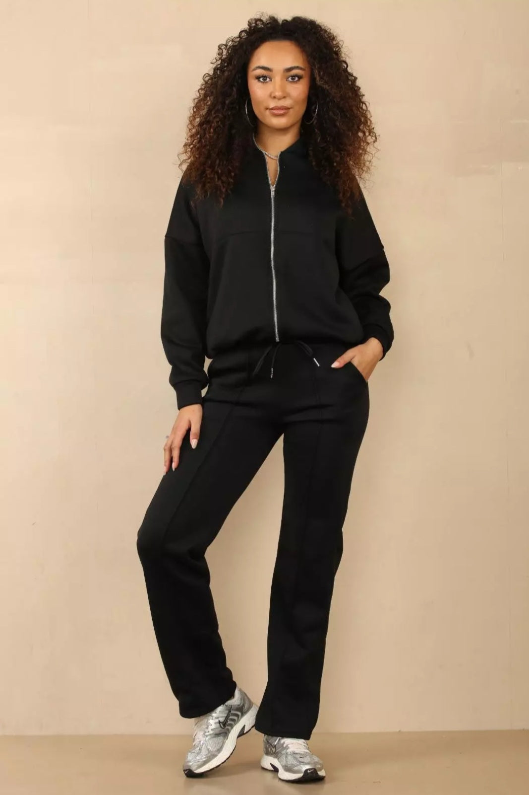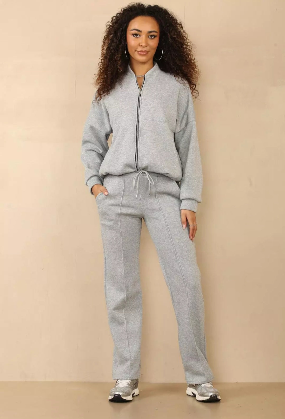 Womens Bomber Zip Jacket Ladies Palazzo Flare Joggers Lounge Wear Tracksuit Set